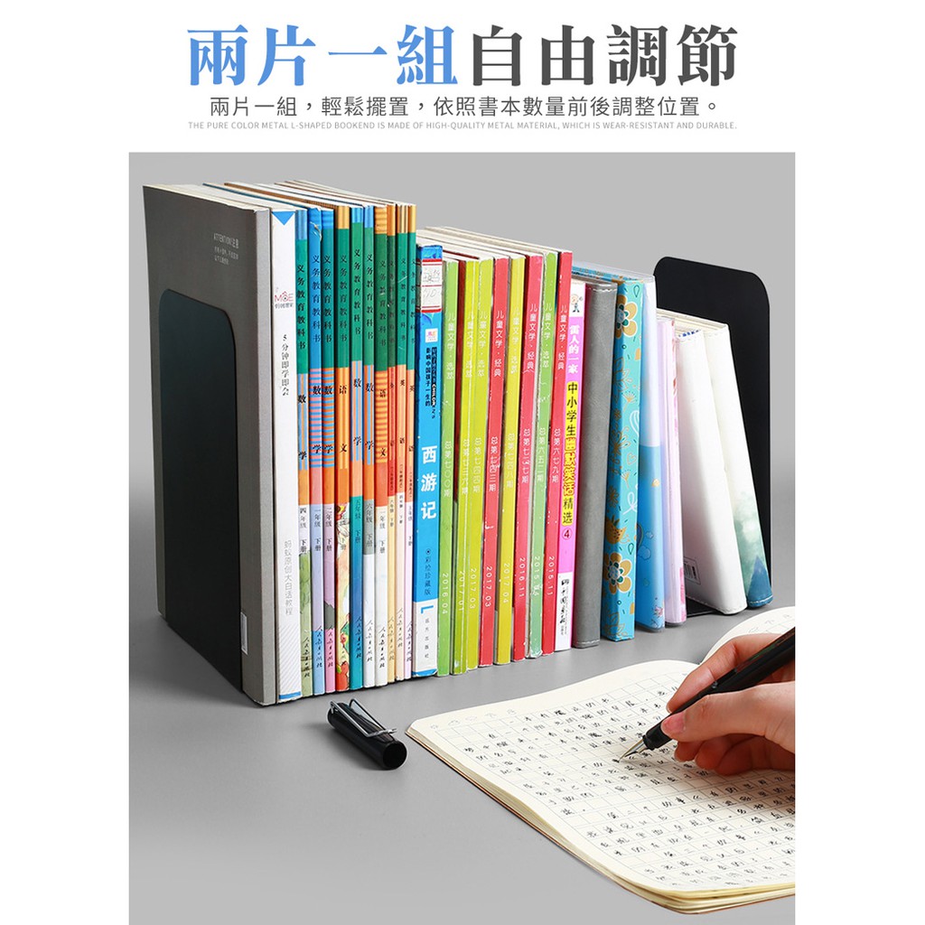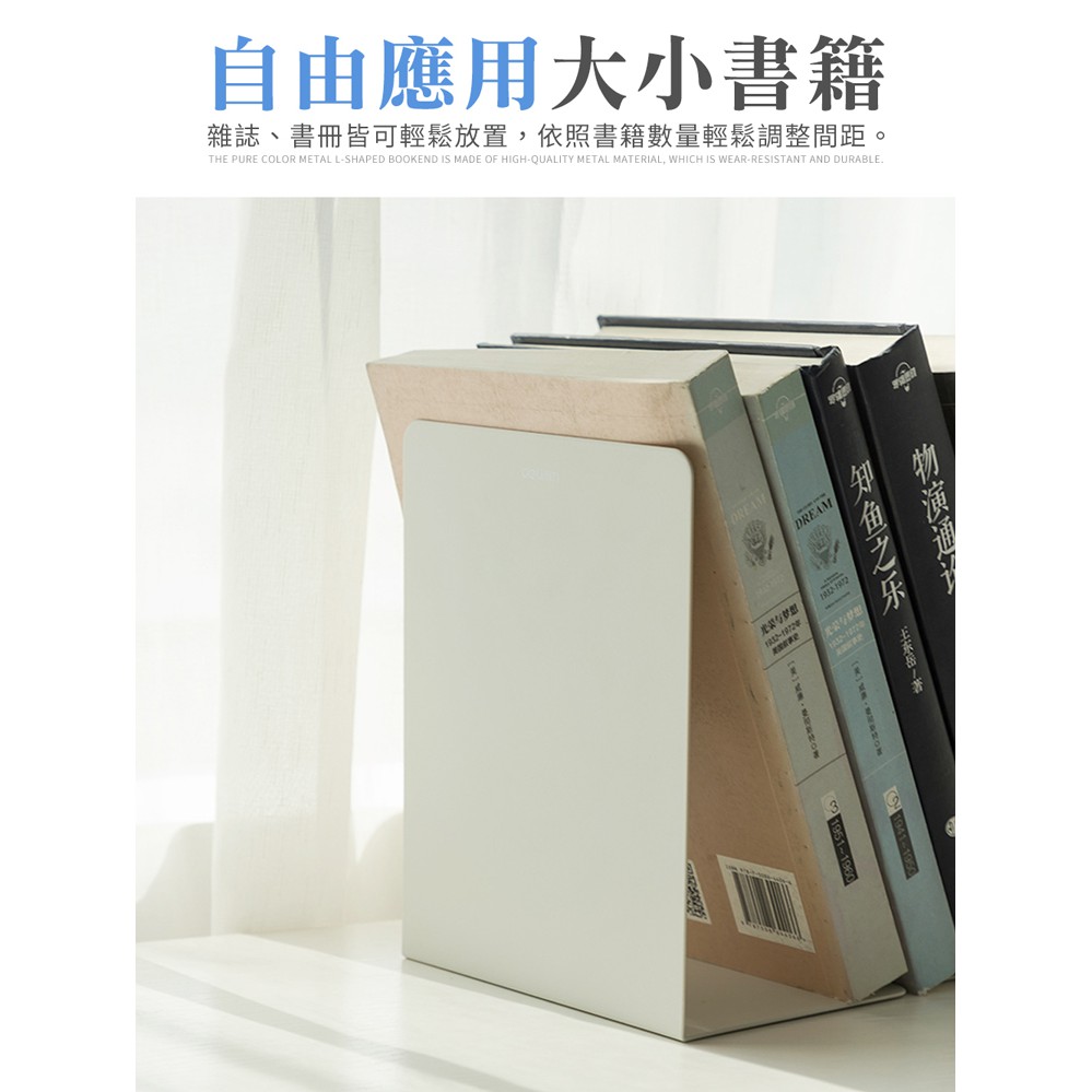 無印風 書架 書立 書擋 金屬 L型書架 書靠 書夾 書本收納 純色金屬L型書架(2片/組)