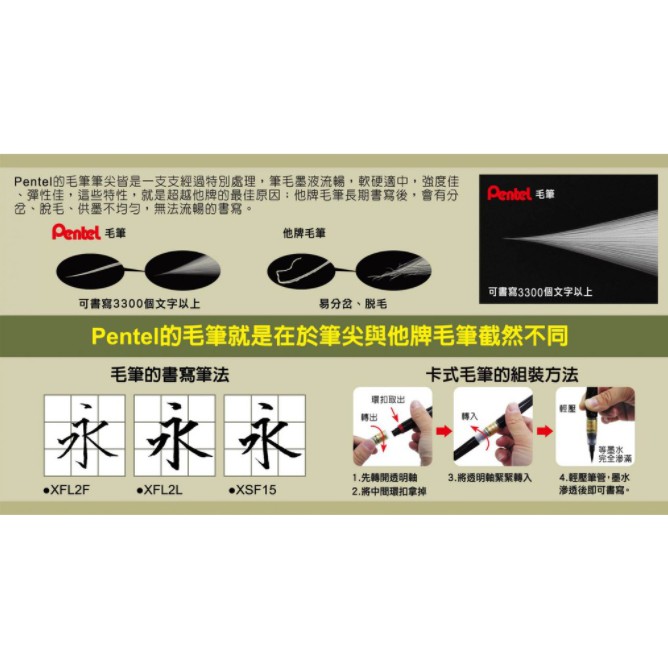 Pentel 飛龍 XFL2卡式毛筆(極細/中字/太字) XFL2F/XFL2L/XFL2B
