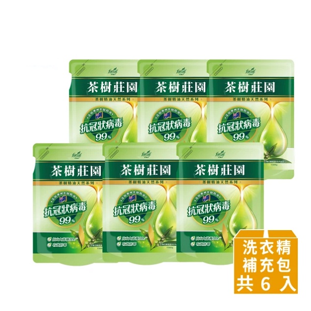 【茶樹莊園】茶樹超濃縮洗衣精補充包-抗菌/消臭/酵素(6包/箱)