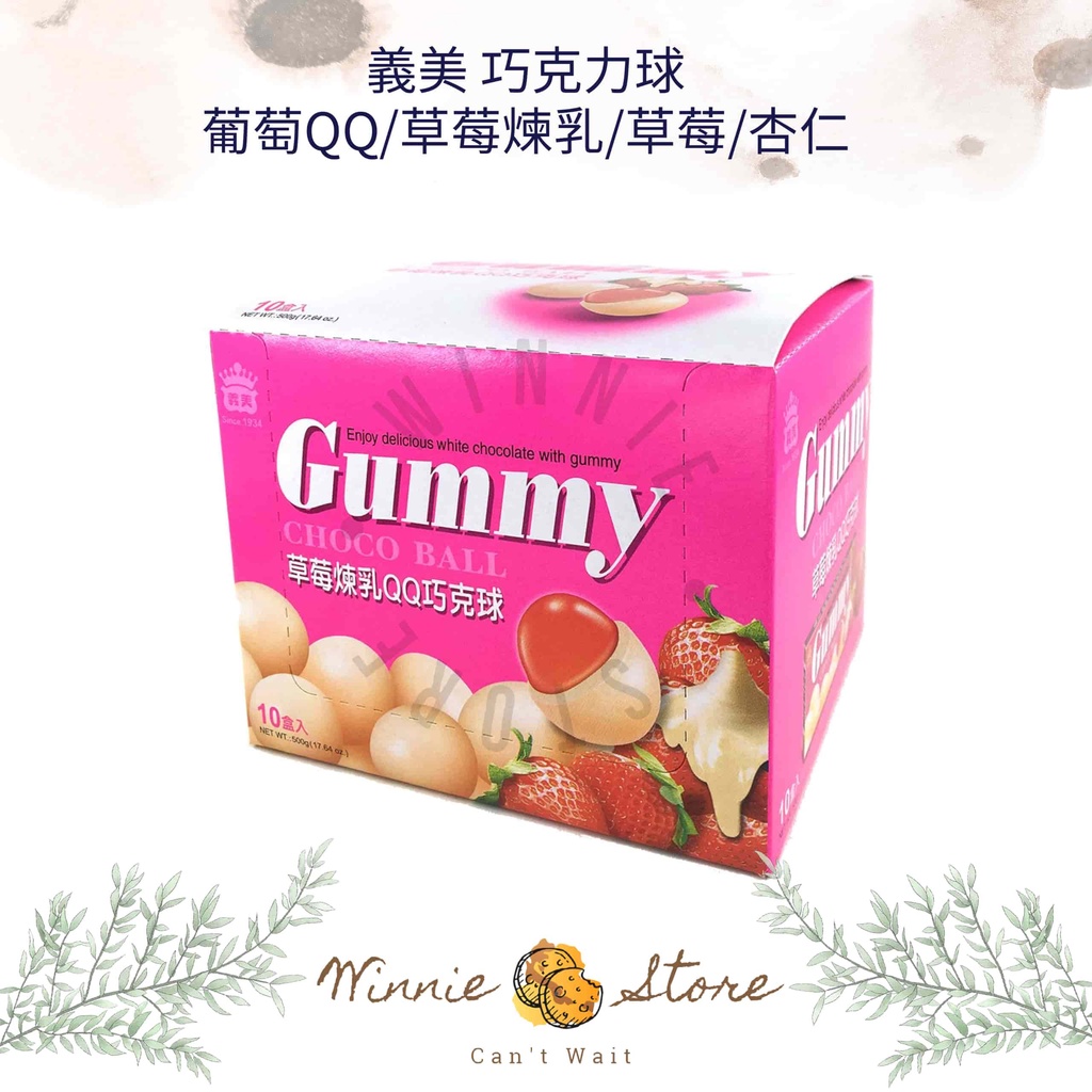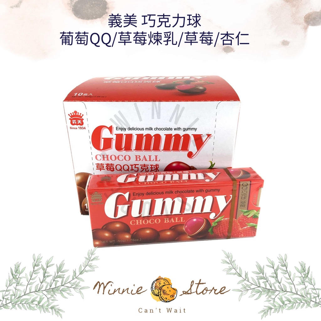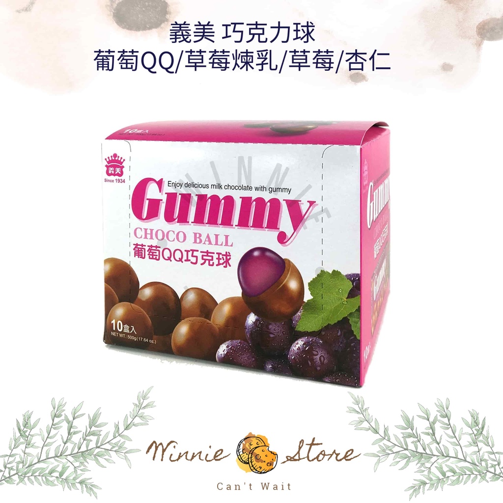 義美GUMMYQQ巧克力球1封(10小盒)-葡萄/杏仁/草莓/草莓煉乳 50g 葡萄 磚形盒 QQ 巧克力