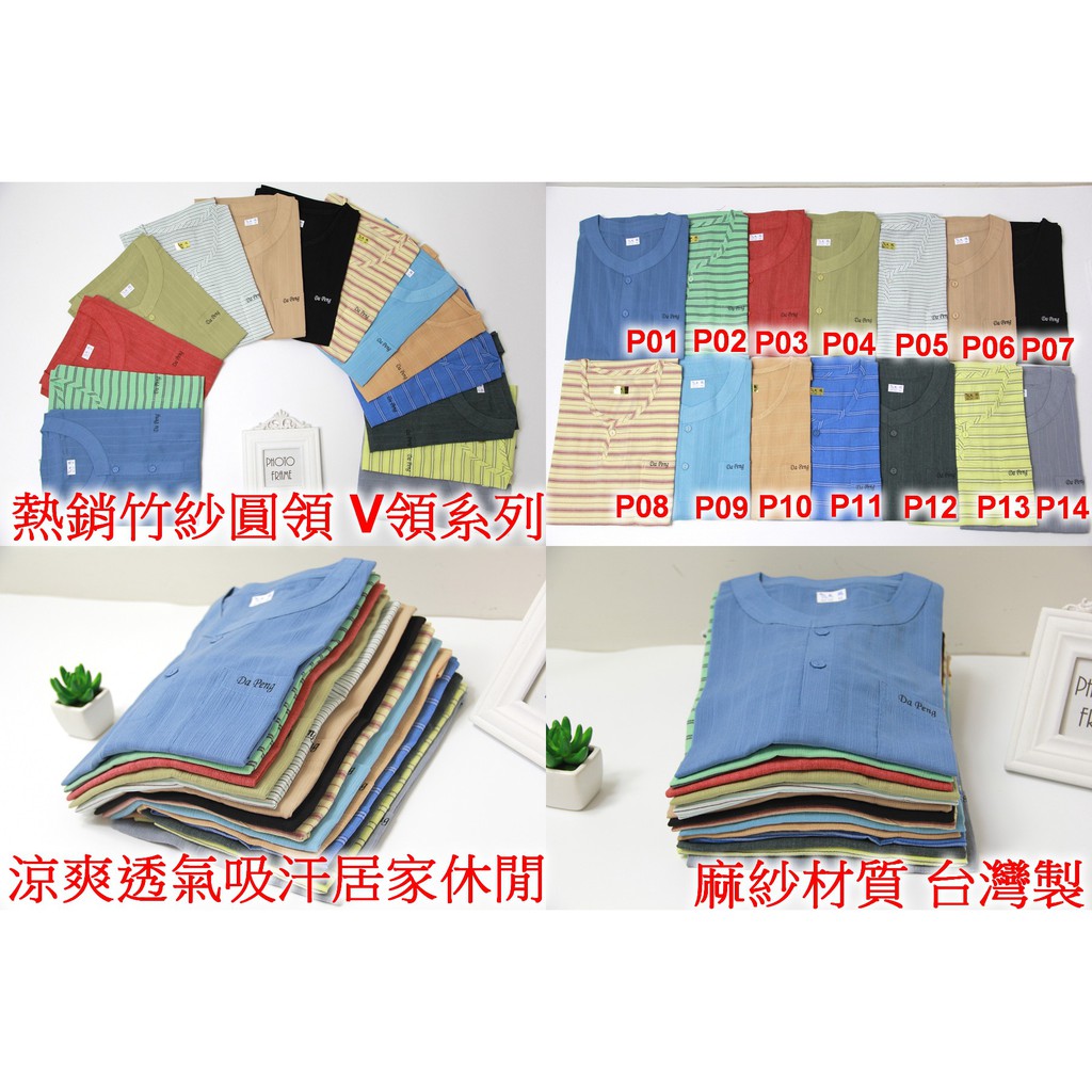 開發票 台灣現貨 當日出貨 大鵬麻紗 竹紗 圓領 v領 短袖內衣 透氣吸汗 涼杉 內衣 涼感 M~2L休閒 短袖素T