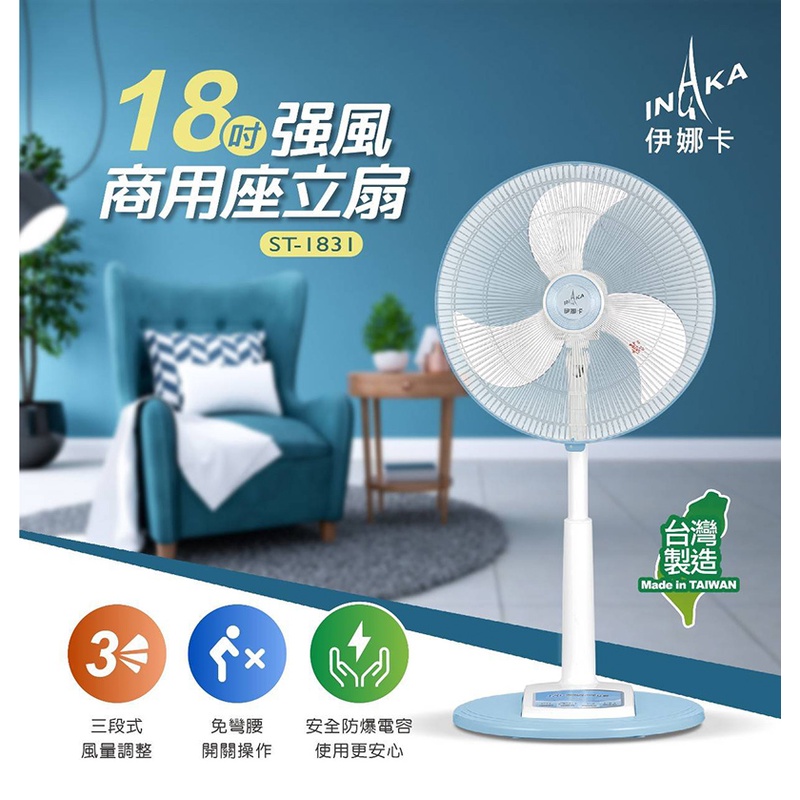 免運【伊娜卡】18吋強風商用桌立扇ST-1831