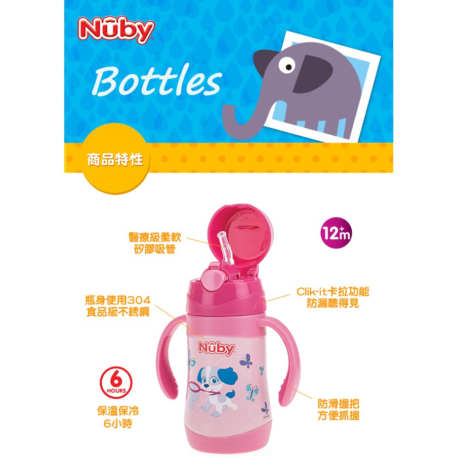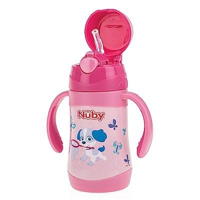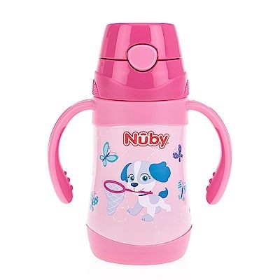 Nuby 不鏽鋼真空學習杯(細吸管)-花漾犬 280ml
