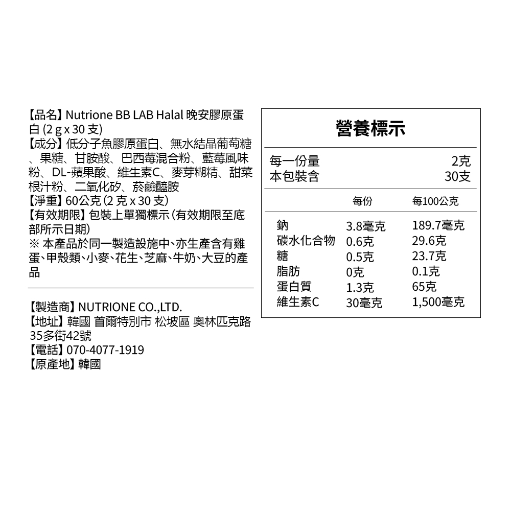 Nutrione BB LAB Halal 晚安膠原蛋白(2g x 30 支)