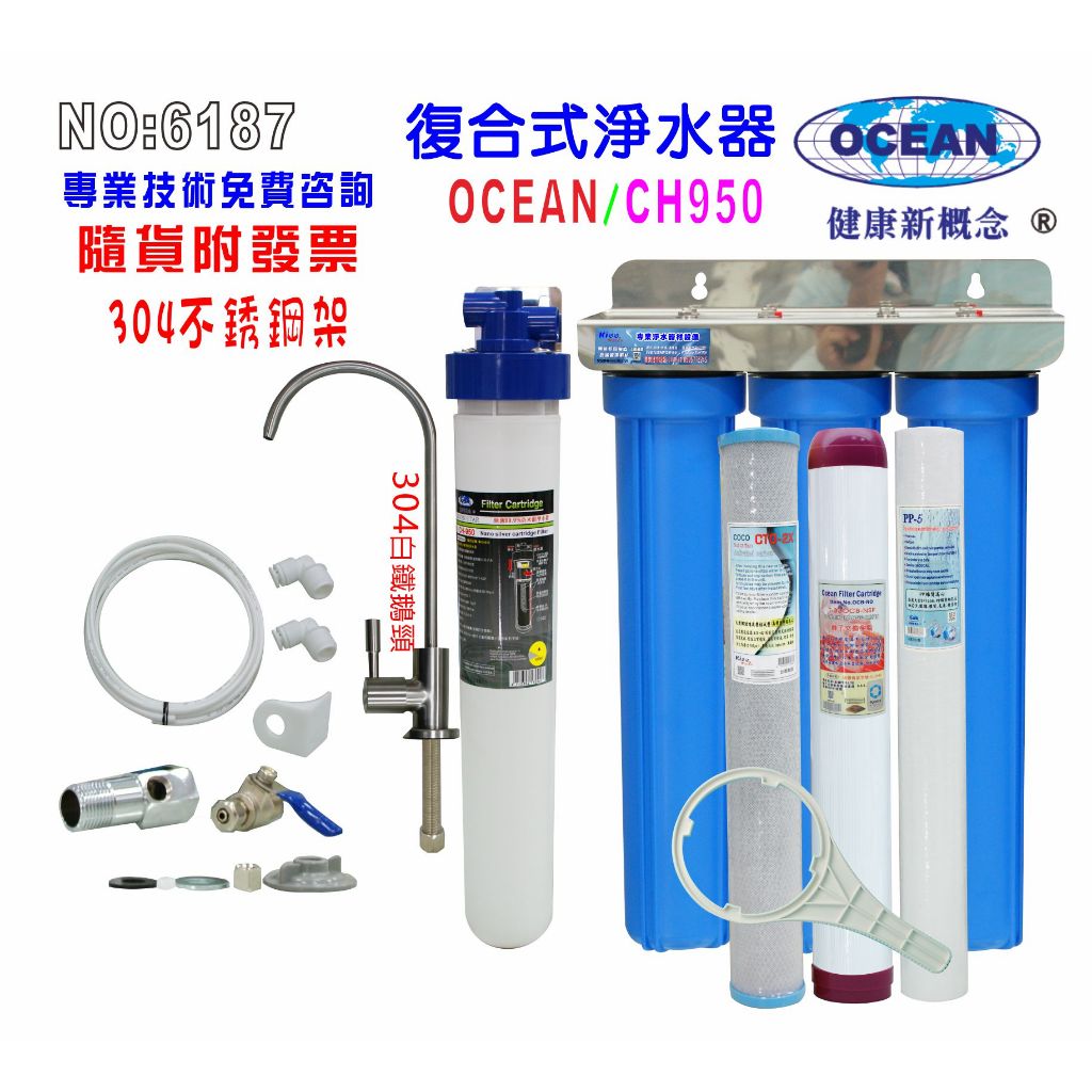 OCEAN淨水器304白鐵鵝頸龍頭過濾器3MEverpure濾頭共用CH-950製冰機濾水咖啡機貨號6187【巡航淨水】