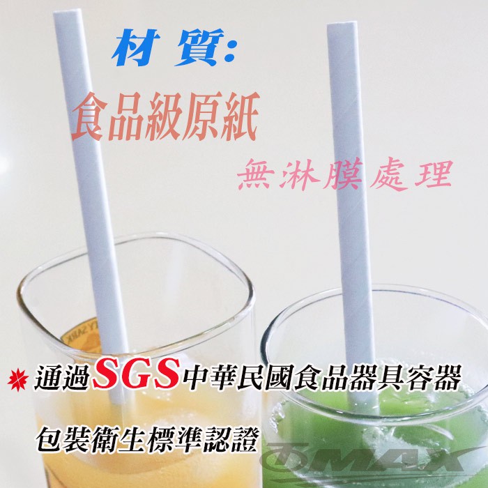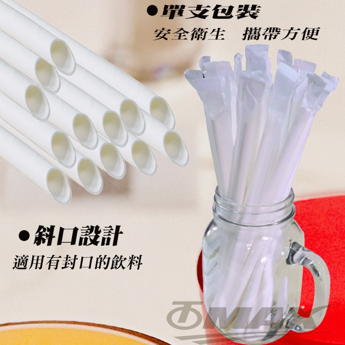 OMAX環保斜口單支包裝紙吸管(8mm/21cm) 200支