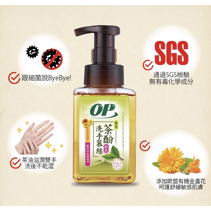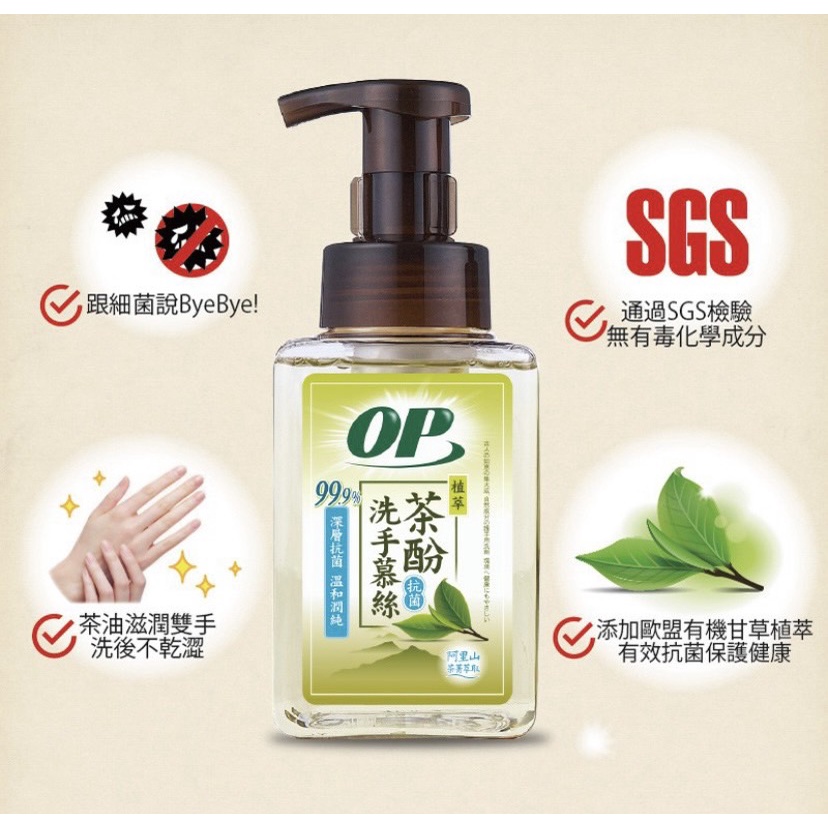 OP 抗菌洗手慕絲 茶酚 洗手 慕絲 天然無毒 抗菌 有機認證 現貨