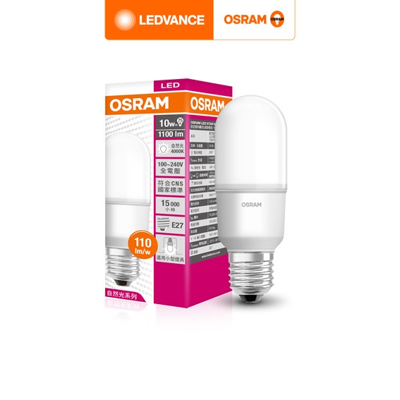 OSRAM 歐司朗 10W LED 燈泡 STICK 小晶靈 E27 100-240V 白光 黃光 自然光 官方直營店