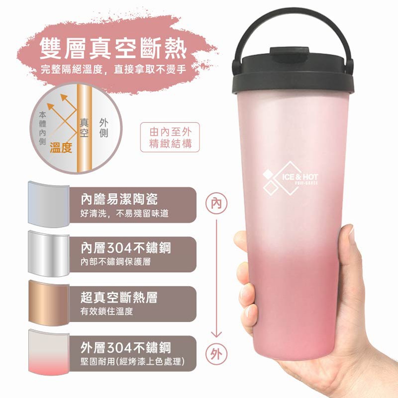 【蝦皮直營】FUJI-GRACE富士雅麗 SGS陶瓷噴層 保冰手提杯 保冷 保溫杯 700ml