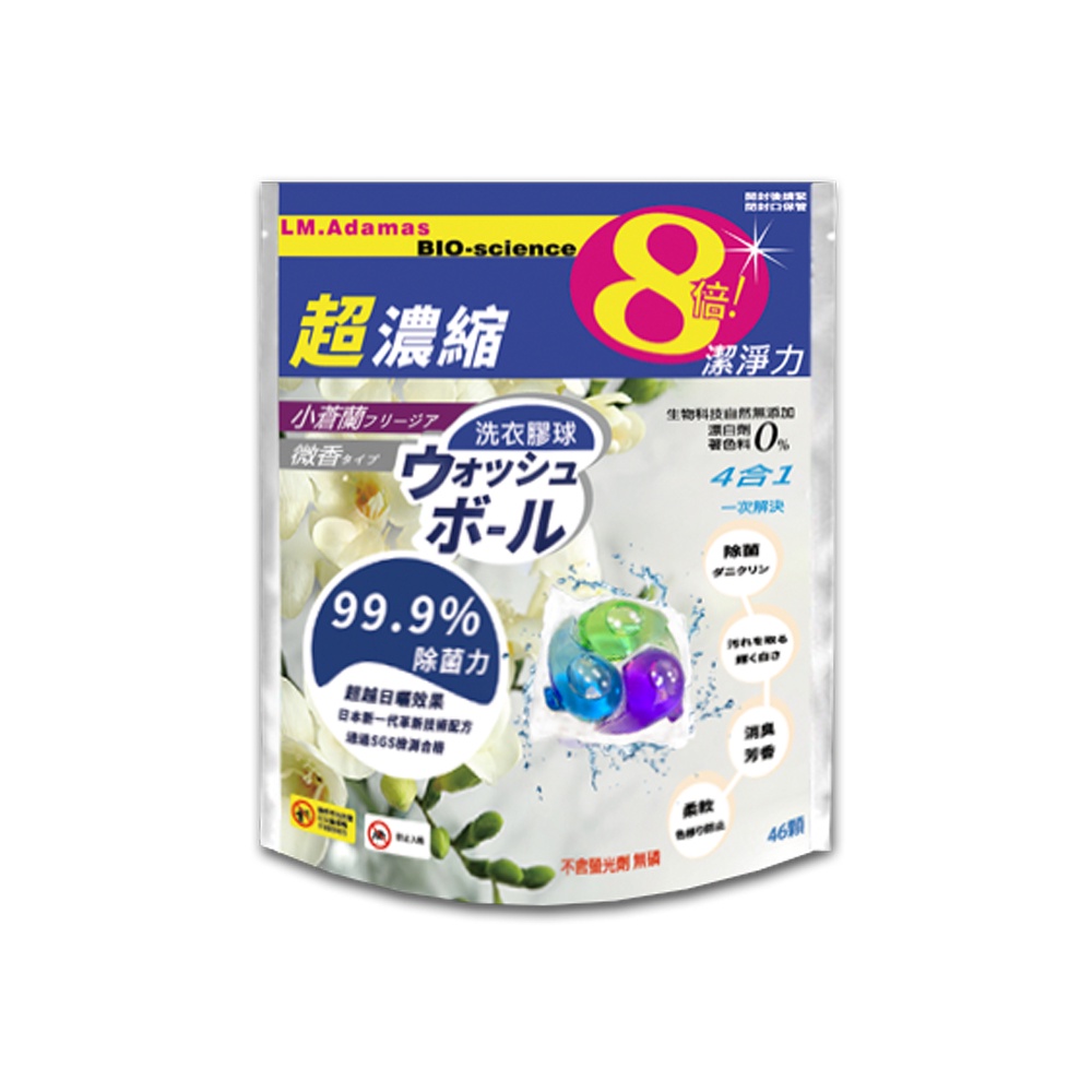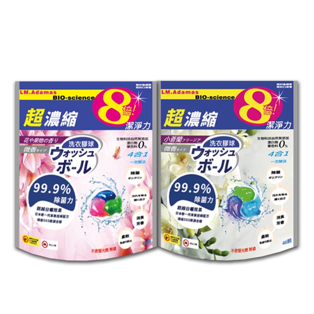 現貨 日本LM.Adamas 5合1深層抗菌超濃縮洗衣海豚/袋裝46顆/包 (微香型花果香/小蒼蘭)