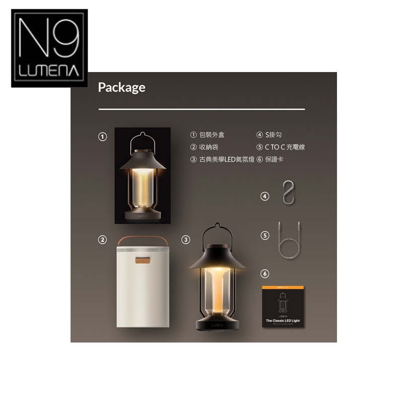 【N9 LUMENA】古典美學LED氣氛燈-深棕