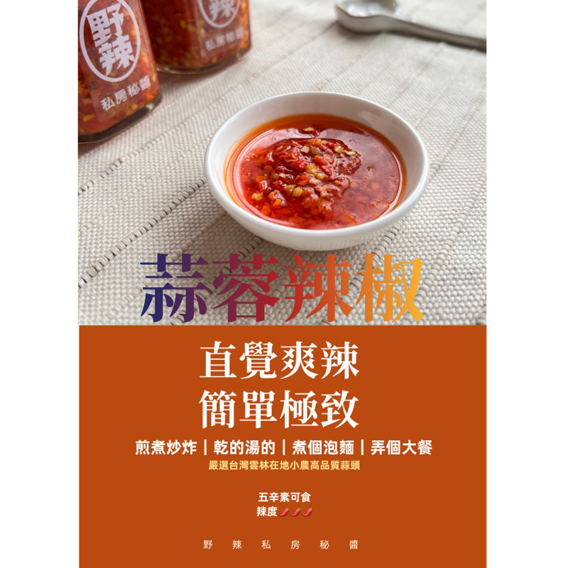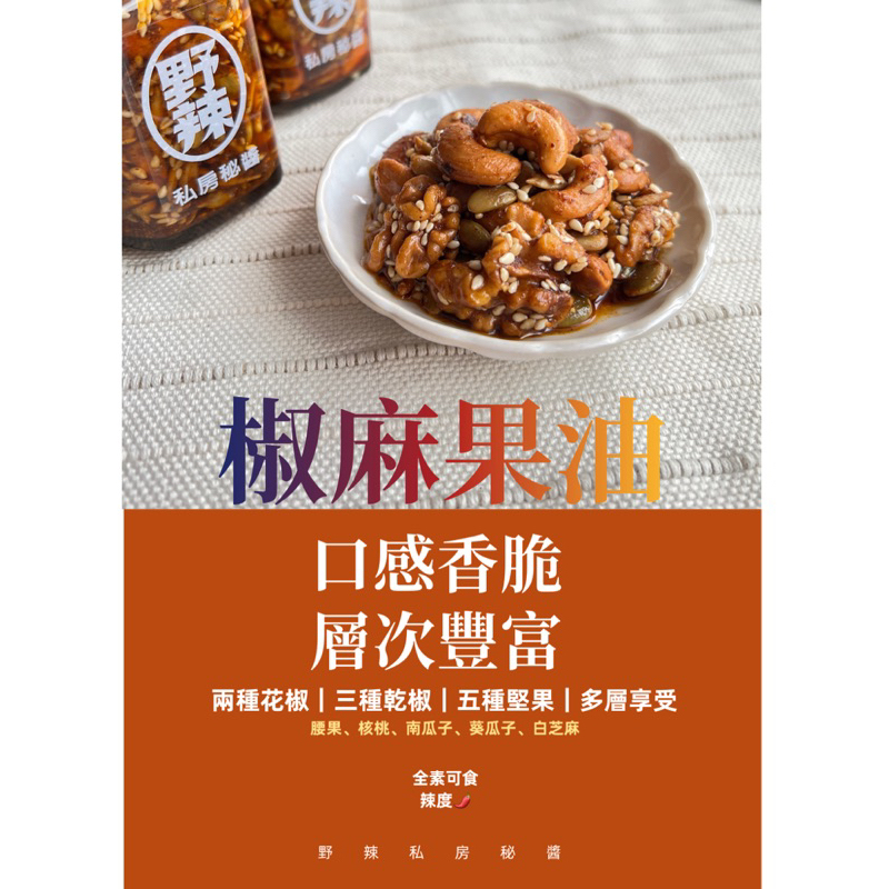 野辣®純手工辣醬|油潑辣子 椒麻果油 小魚辣椒 無油辣椒 蒜蓉辣椒 堅果醬 川味辣醬 椒麻油 川味紅油 扒扒飯
