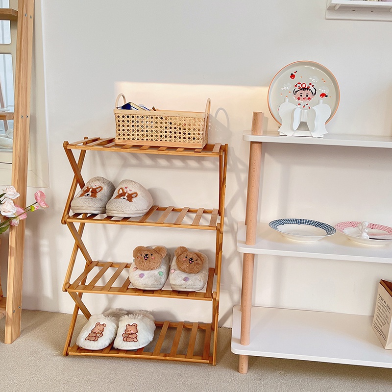 Mocha♡台灣現貨♡電子發票 可折疊收納2/3/4層竹木鞋架 簡易家用實用架子宿舍門口放鞋架木質置物架 收納置物免安裝