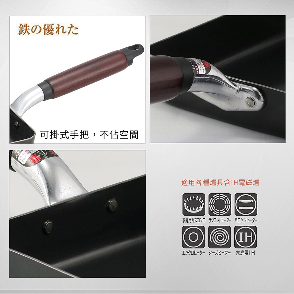【日本北陸hokua】日本製輕量級木柄黑鐵玉子燒(大)