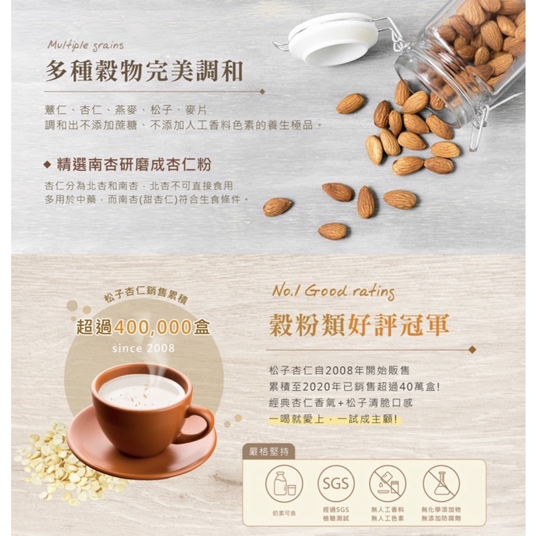 【自然時記】百穀精華之松子杏仁 💖蝦幣回饋 免運💖 奶素 隨身包 沖泡穀粉 養生飲品 植物奶 杏仁 沖泡 早餐 松子杏仁