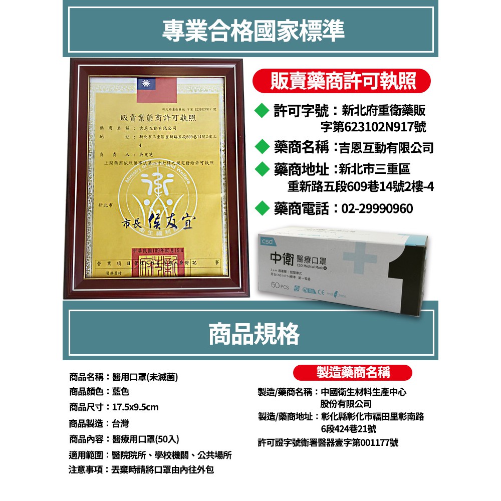 中衛醫療級口罩 CSD口罩 一級口罩 薄款