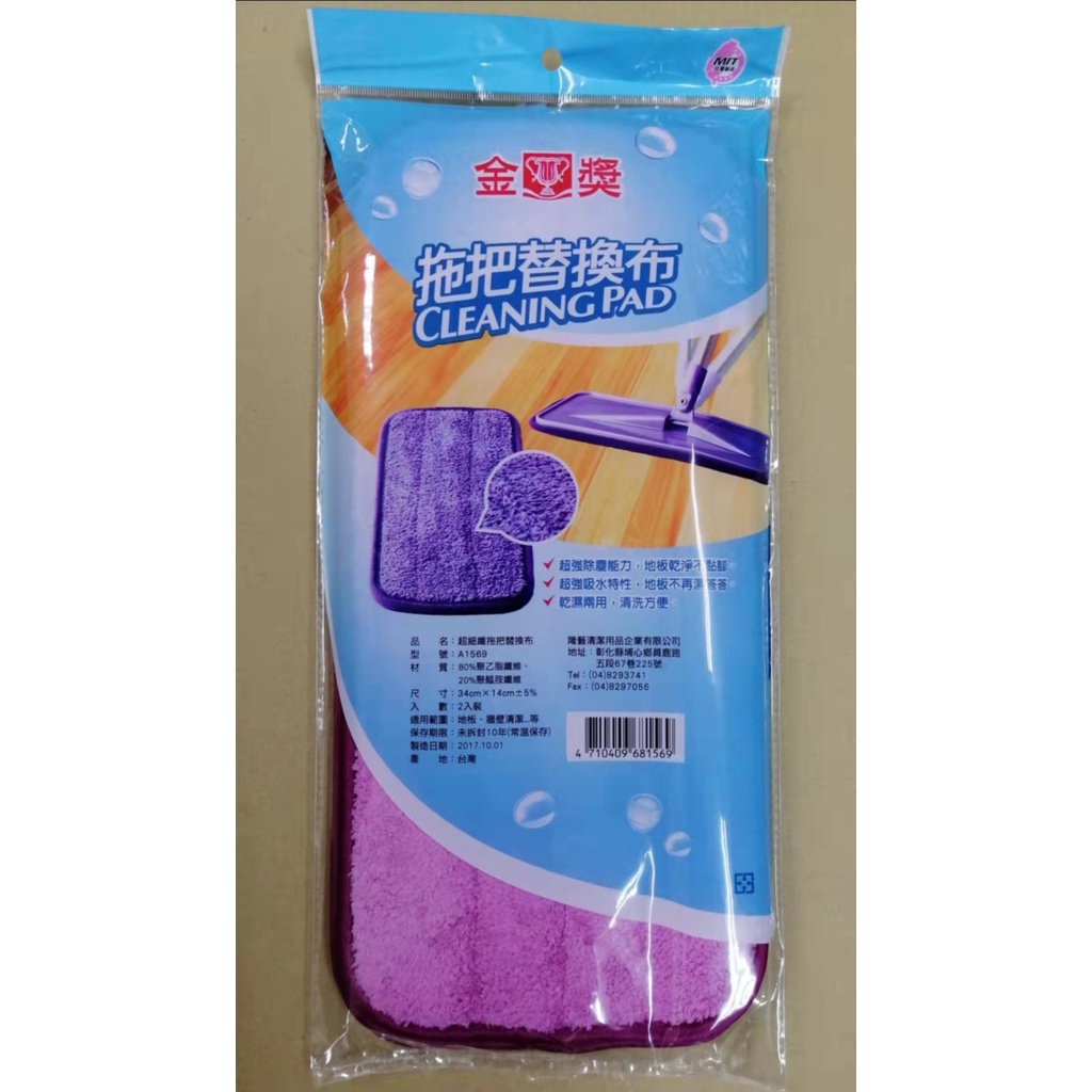 台灣製 金獎 超細纖維拖把1把 A1552 / 拖把替換布(2入裝)A1569 超細纖維布 乾濕兩用 吸附微塵
