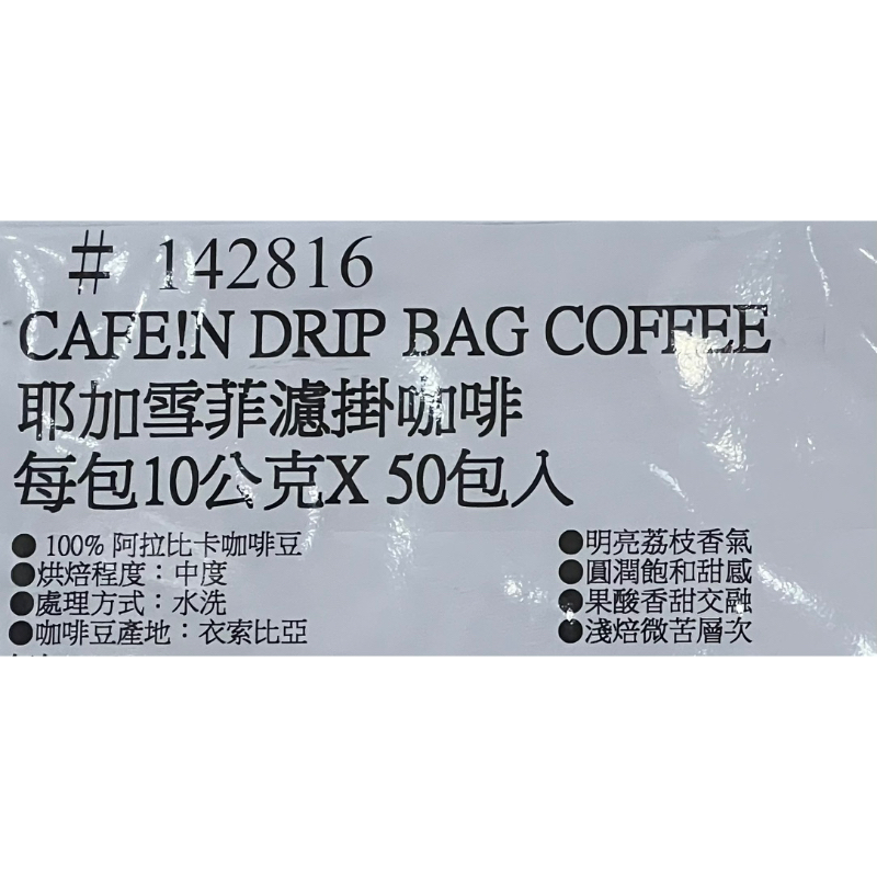 ✅現貨🔴特價‼️COSTCO👉硬咖啡 耶加雪菲濾掛咖啡 10公克 X 50入 #142816#效期2027.08月