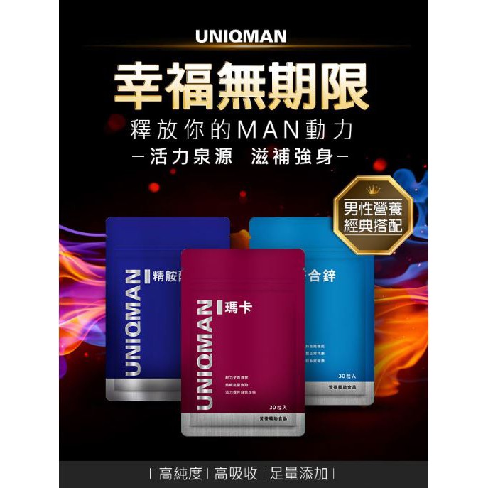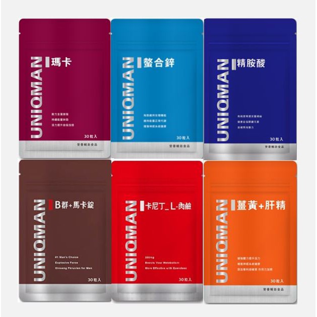 UNIQMAN 瑪卡/螯合鋅/精胺酸/B群瑪卡/薑黃肝精/卡尼丁_L-肉鹼/葡萄糖胺+軟骨素/BCAA支鏈胺基酸