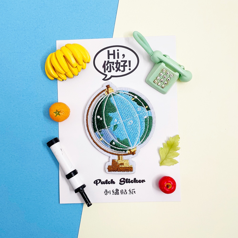 Hi你好|地球儀原創設計刺繡貼紙宇宙貼紙餐袋貼紙行李箱貼紙刺繡布貼布貼