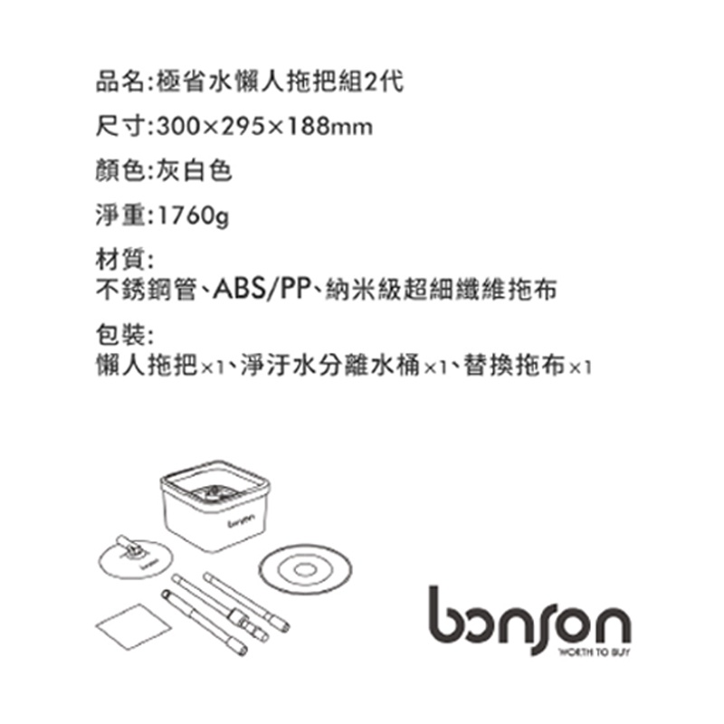 bonson 懶人拖把 極省水懶人拖把組2代 髒清水分離 吸水拖把 超懶人平板拖把 免手洗拖把 淨汙分離懶人拖把 現貨
