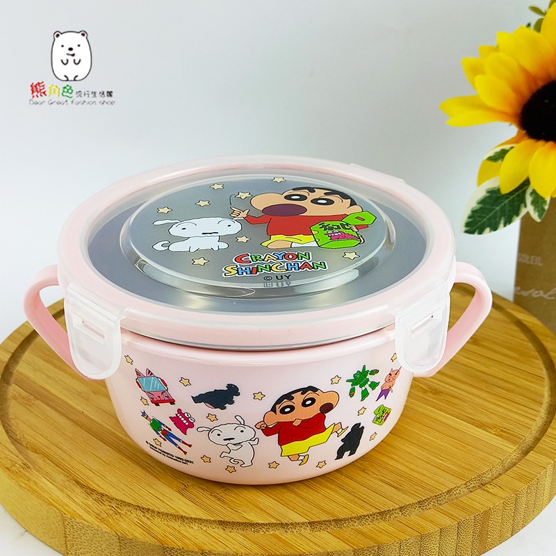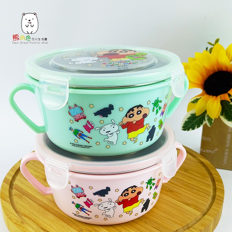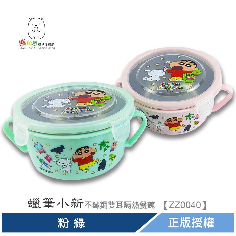 蠟筆小新 不鏽鋼雙耳隔熱餐碗 粉 綠 【ZZ0040】 熊角色流行生活館