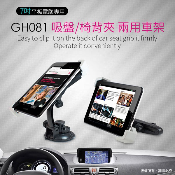 7吋平板專用 吸盤/椅背夾 兩用車架【現貨】吸盤車架 椅背夾車架 平板支架 平板車架