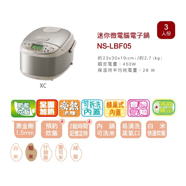 象印3人份黑金剛微電腦電子鍋(NS-LBF05)