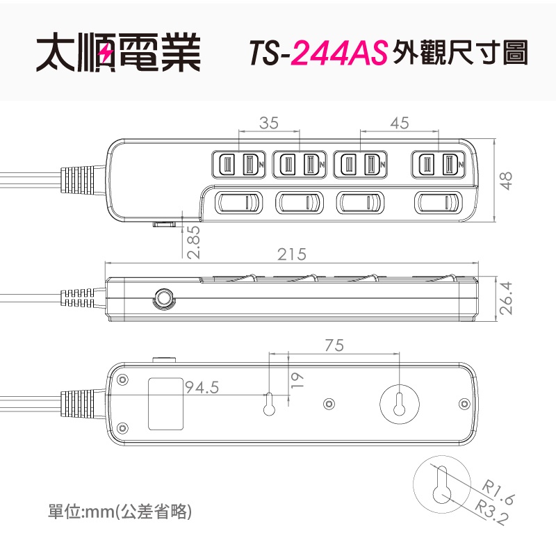 Tyson太順電業 4切4座2P延長線(TS-244AS)