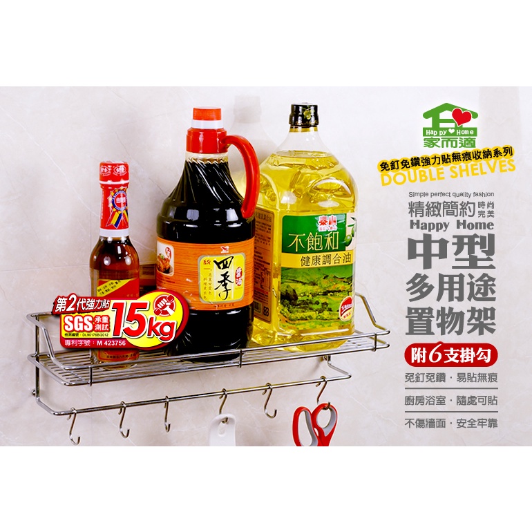 『附粗糙面輔助貼』家而適第二代強力貼家而適中型多用途置物架壁掛架無痕收納架家而適浴室收納家而適無痕浴室置物架廚房置物架