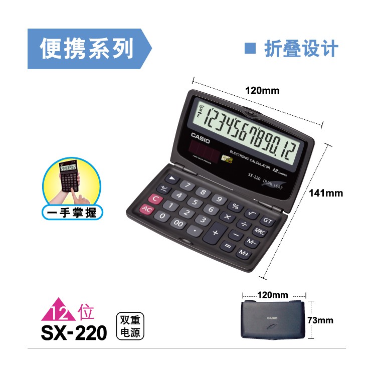 CASIO SX-220 國家考試專用 計算機 (摺疊設計) (12位數)