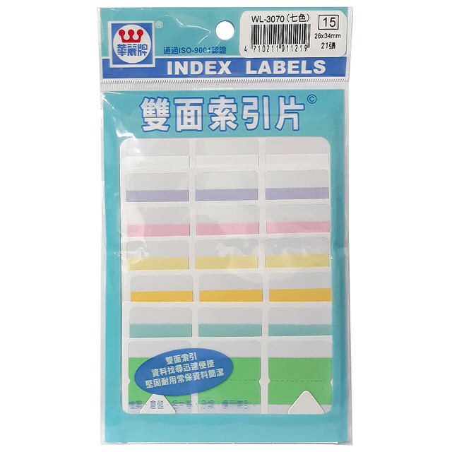 華麗牌 WL-3070 雙面 7色索引片標籤 (26X34mm) (21張/包)