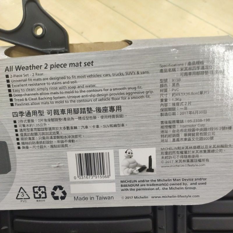 Michelin 米其林 腳踏墊 915 前駕駛 前乘客 兩片式 黑 可剪裁 通用型 無毒 加加