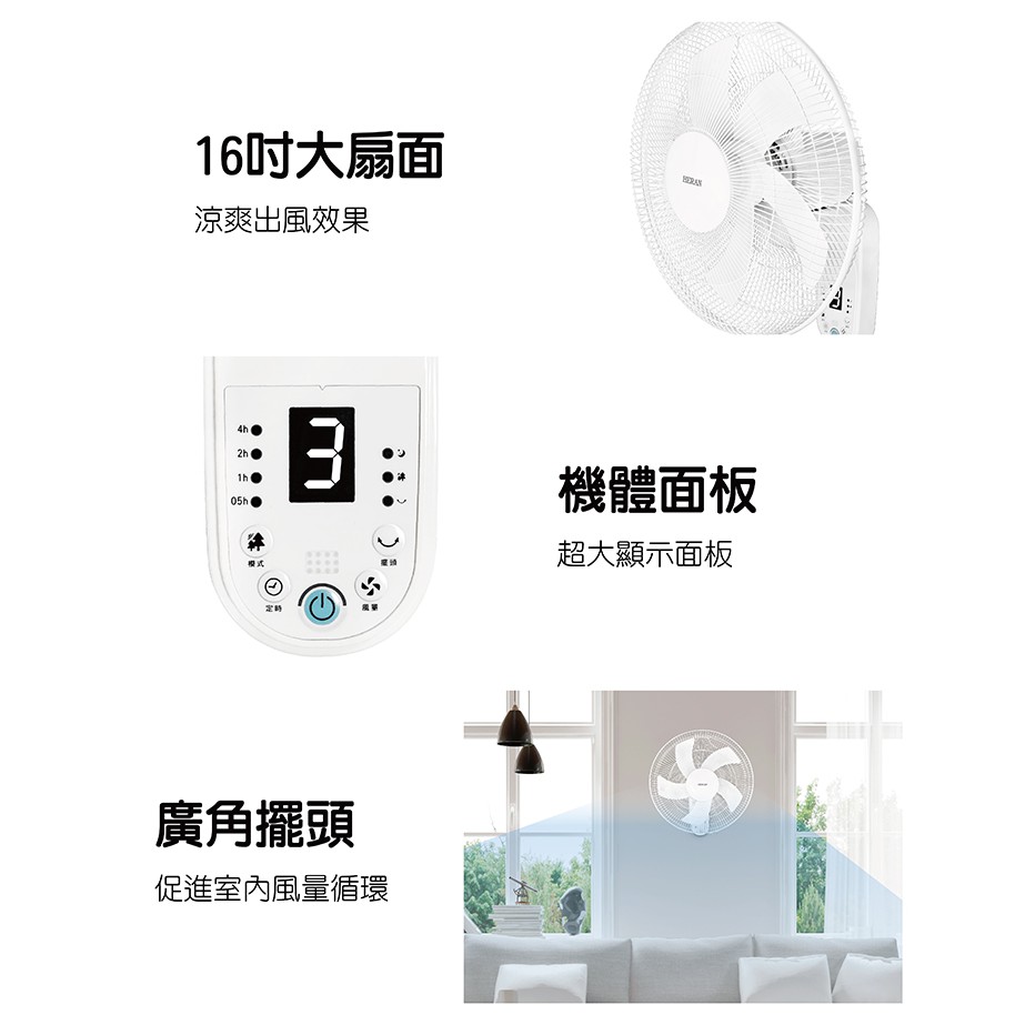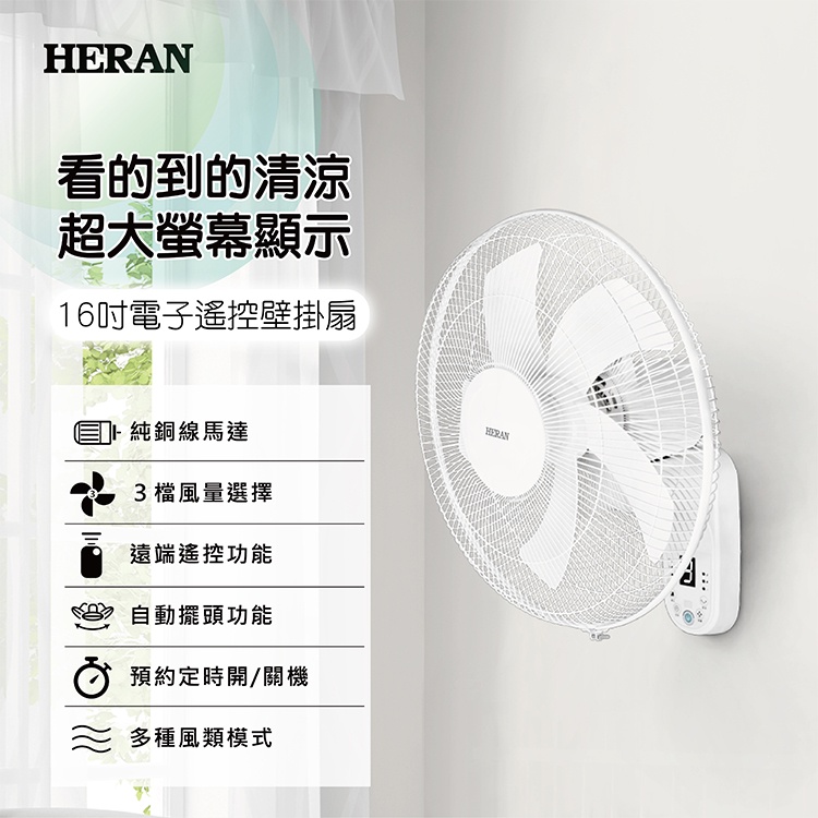 【免運x大量現貨】HERAN 禾聯 16吋電子遙控壁掛扇 電風扇 電扇 壁掛風扇 HLF-16CH53A 壁扇