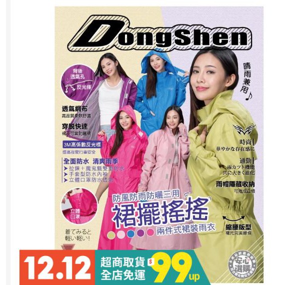 免運+再送收納袋東伸 裙襬搖搖女仕型套裝雨衣-紫色(機車雨衣、二件式雨衣、風衣、裙裝)