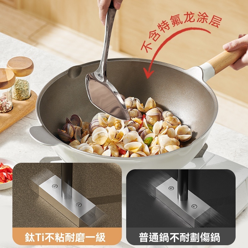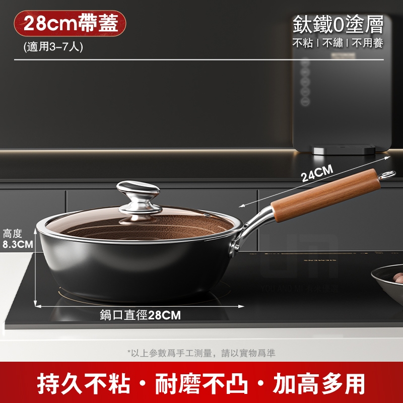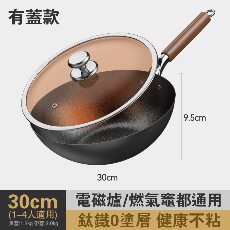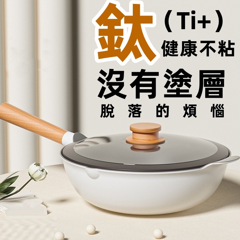 【台灣現貨 無需開鍋】無塗層炒鍋 不沾鍋 有鈦鍋 抗菌鈦炒鍋 鈦鍋 不粘鍋 炒鍋 少油煙 炒菜鍋 電磁爐燃氣竈IH爐炒鍋