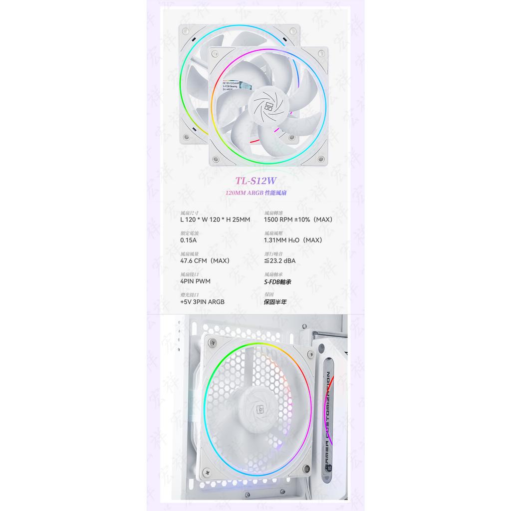 【C艾酷 】利民 TL-S12-W 系列風扇工包 12公分風扇 /ARGB燈光同步/PWM調速