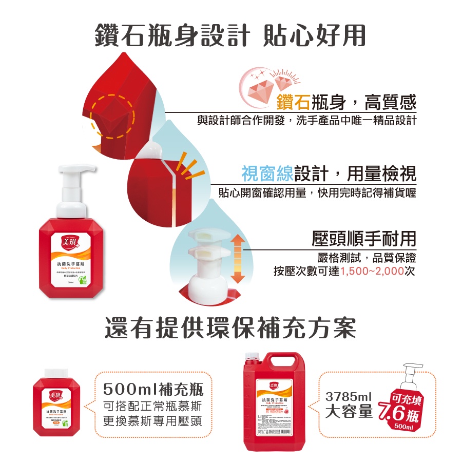 【美琪官方直營】美琪抗菌洗手慕斯(補充瓶) 500ml 單瓶《官方直送》