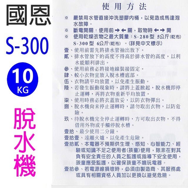 國恩速霸 S-300 10KG脫水機