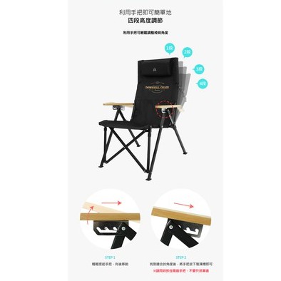 KZM 素面木手把四段可調折疊椅 黑色 / 715141891