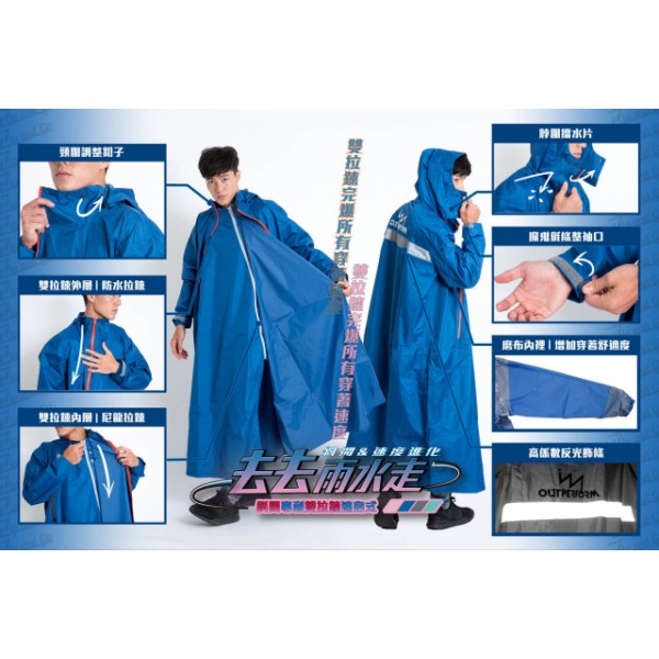 Outperform 奧德蒙 去去雨水走 君邁 brightday 雨衣 雙拉鍊 斜開 連身 風雨衣 D1 綠