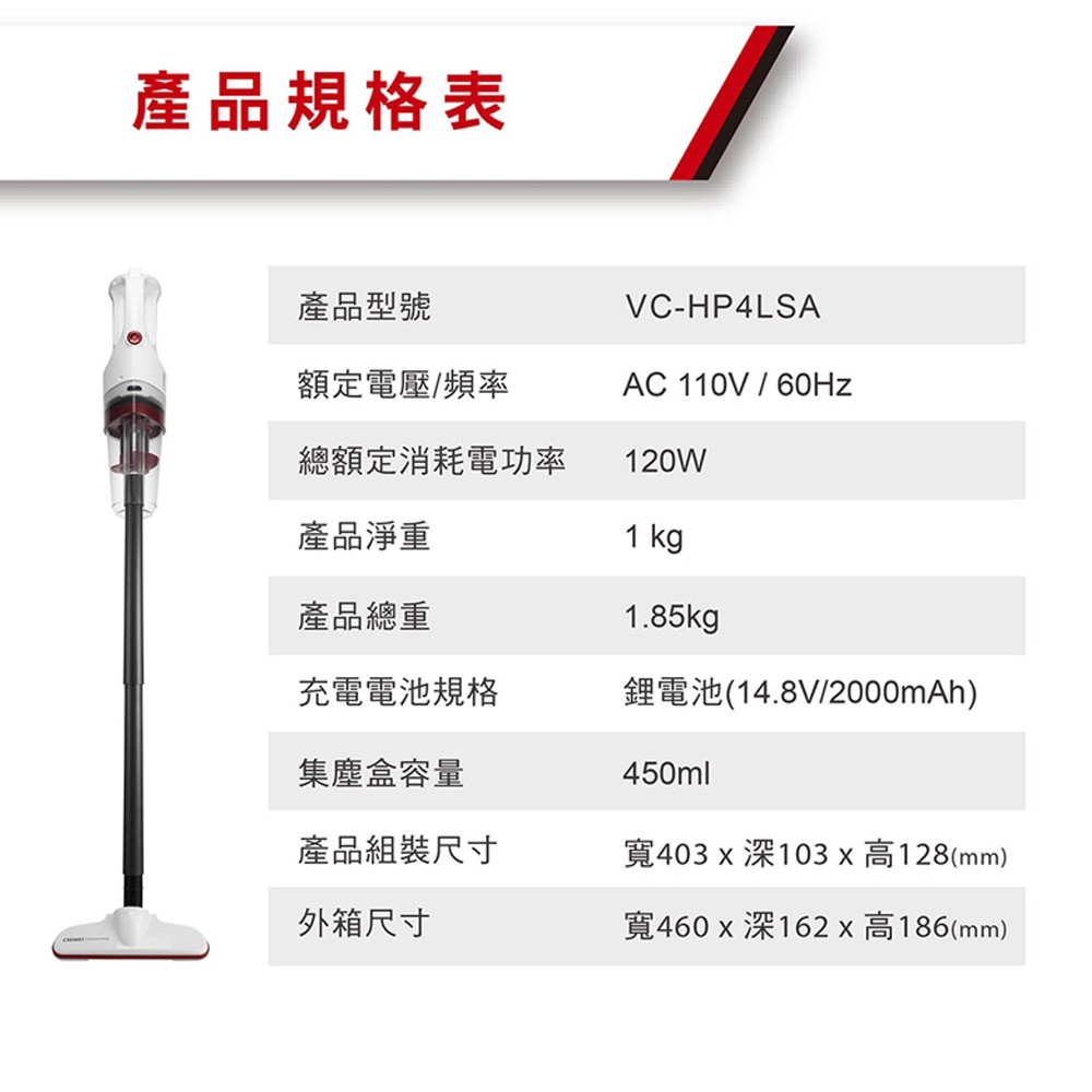 (輸碼97折 HEJANAL97L)CHIMEI 奇美 多功能無線吸塵器 VC-HP4LSA