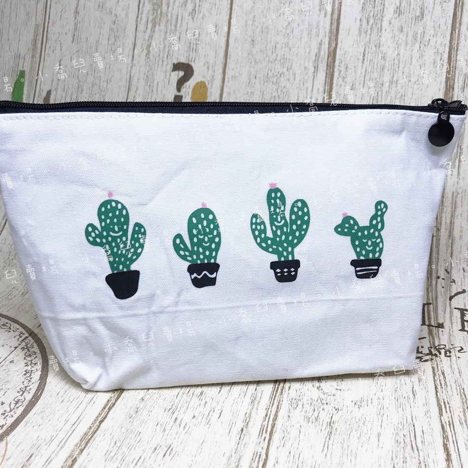 ♥小喬兒♥旅行用品~帆布 仙人掌 化妝包/綠 白 盆栽 植栽 多肉植物 沙漠植物/出差旅行