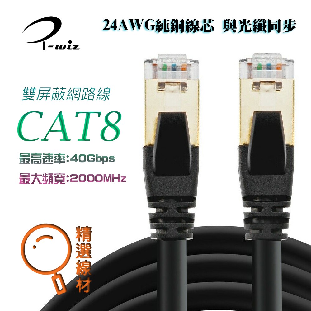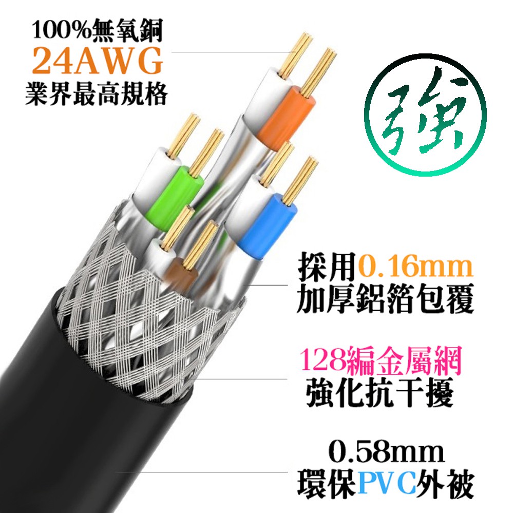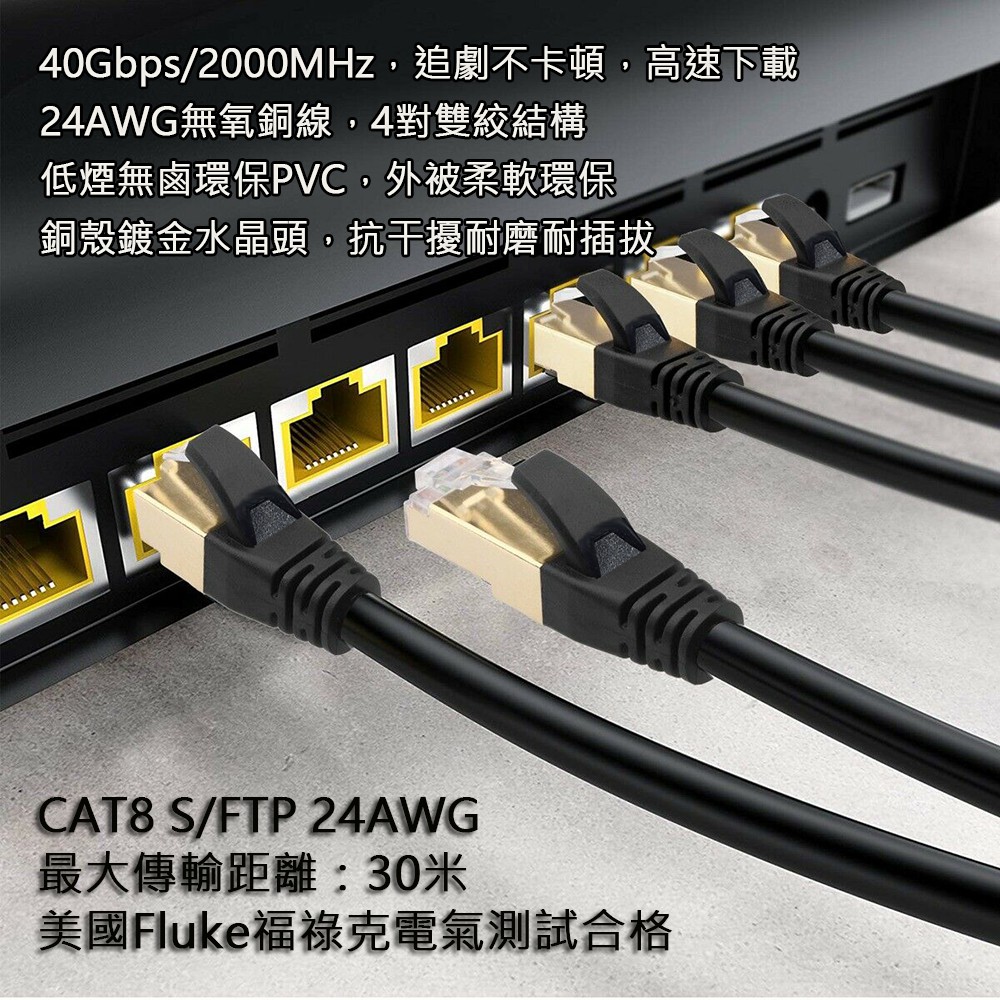 Cat.8 超高速40Gbps 網路線 24AWG線芯 與光纖同步 S/FTP CAT8 八類 美國Fluke測試合格