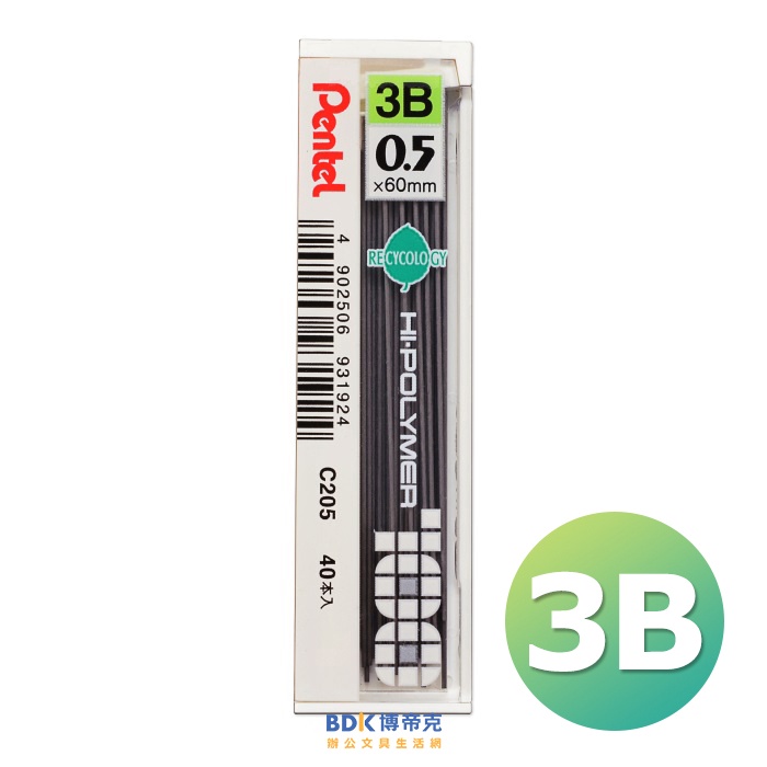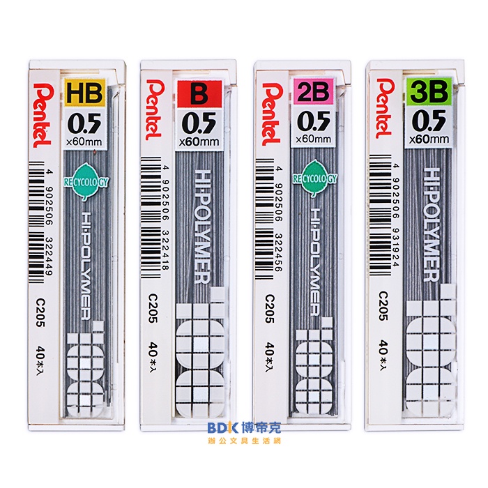 Pentel 飛龍文具 HI-POLYMER 0.5mm自動鉛筆筆芯 40入 C205 系列
