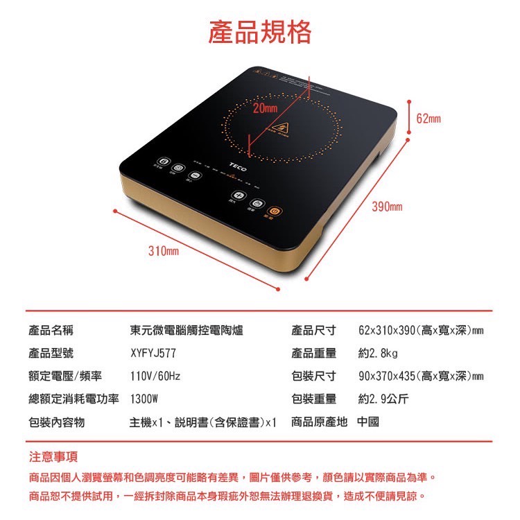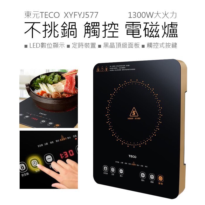 【公司現貨可超取】 東元TECO 1300W大火力 不挑鍋 微電腦 觸控 電陶爐 電磁爐 黑晶爐 XYFYJ577
