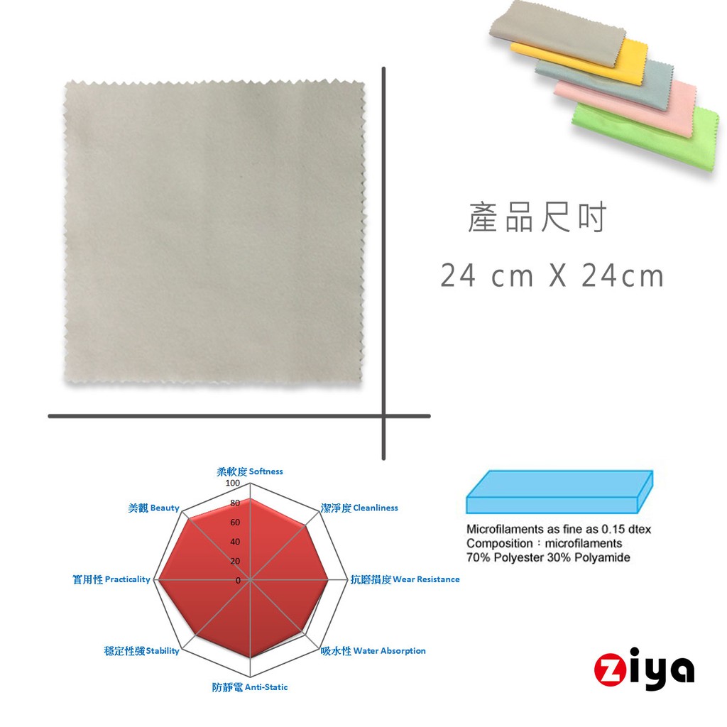 [ZIYA] 超細纖維擦拭布 手機/平板/筆電/螢幕適用 雙面絨面料 24X24cm 1入(顏色隨機)