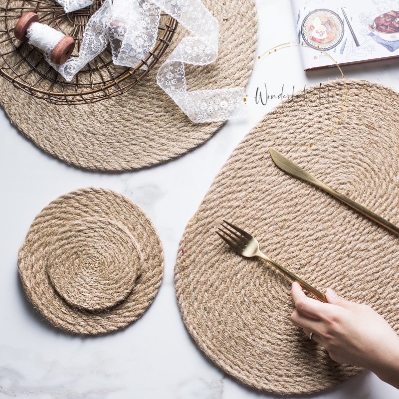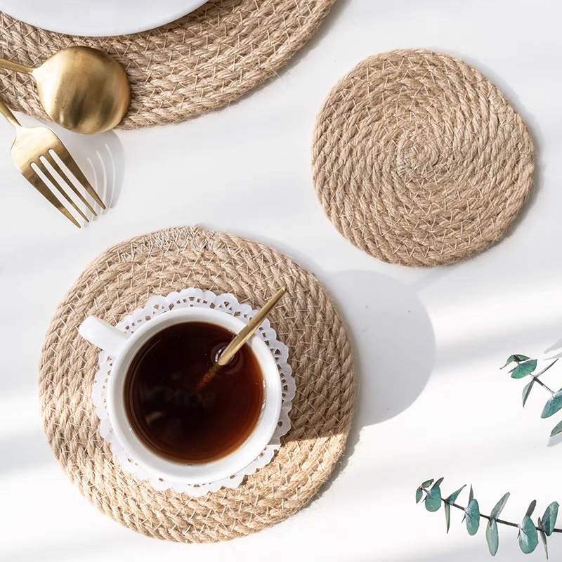 台灣現貨❤︎加厚亞麻編織圓形餐墊 隔熱墊 杯墊 桌墊 拍照道具「有感選物」