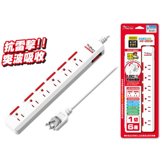 【3CTOWN】含稅 保護傘 iPlus+ PU-3163S-15 1開6插 180度扁插 4.5M 15呎 電源延長線