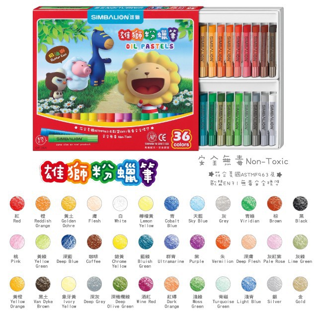 【大學城文具】雄獅SIMBALION OP-36A 奶油獅36色粉蠟筆 36色